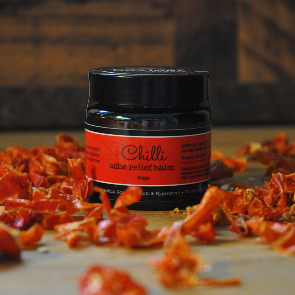 Sunflower/olive oil infused with Calendula. Gotu kola. Chilli. St.John’s Wort. Local Beeswax. Shea butter. Tinctures of Cayenne. Comfrey. Willow bark. Devils claw. Rosemary essential oil. Wintergreen Essential Oil. Cedarwood essential oil. Vitamin E oil.